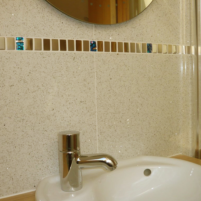 If you are looking to provide your bathroom or kitchen with a standout appearance then you should certainly consider tiles from our extensive Quartz collection. These tiles can be incorporated, to great effect, within contemporary interiors, matching superbly with white panels, wood finishes and chrome fittings. Installing ceiling spotlights is an effective way of accentuating the look of sparkly quartz wall and floor tiles. In addition to home designs, quartz tiles are also selected for the commercial renovation of shops, hotels and restaurants. Not only does quartz have an emphatic appearance but its practical qualities are also highly impressive. It is no surprise that Quartz tiles are therefore selected for high traffic areas of flooring and can be cleaned and maintained with ease.